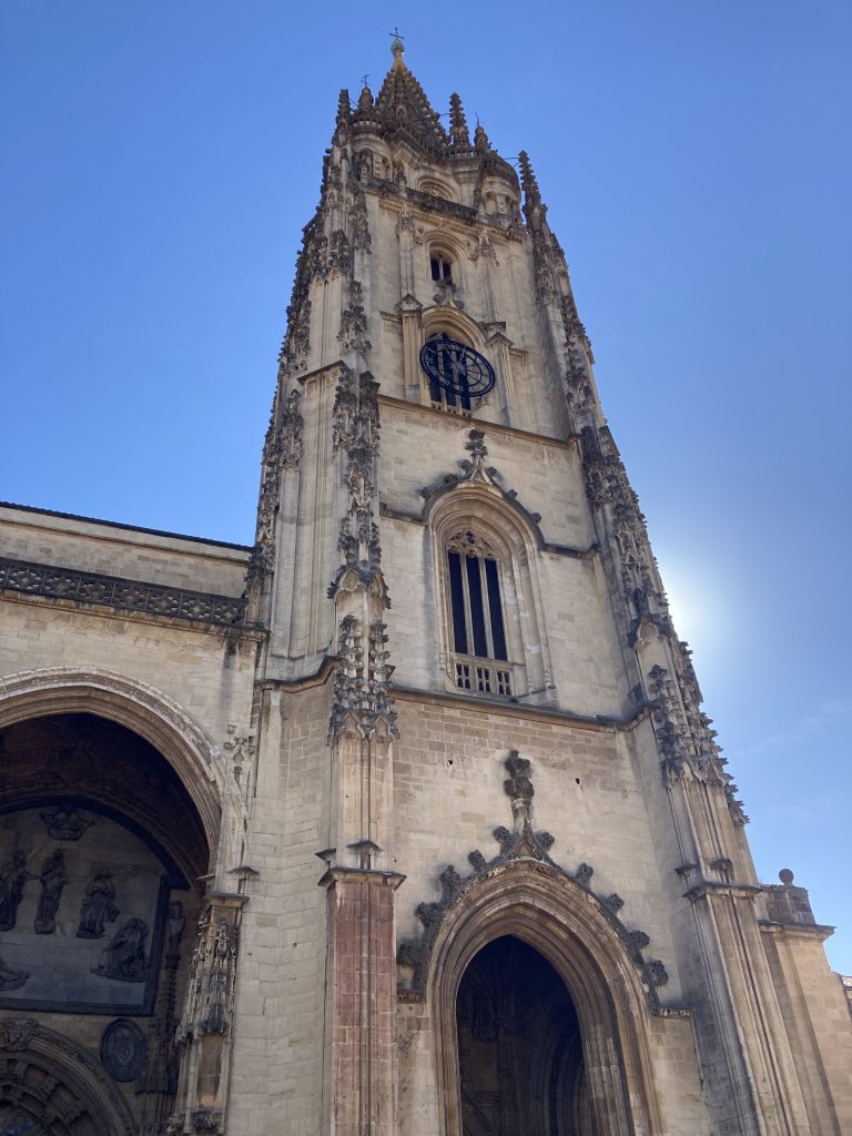 Annyira izgalmas minden! Reggel 7-kor indultam Brüsszelből, majd Oviedo repteréről busszal jöttem a belvárosba (€9). Egyből a Camino Primitivo kezdőpontjához mentem, a Catedral de San Salvadorhoz. Itt megvettem a zarándok útlevelemet €2-ért, benne az első pecséttel. Az útközben szerzett pecsétekkel lehet majd Santiago de Compostelaban “igazolni”, hogy tényleg végigjártam az El Caminot. Kicsit csellengtem a városban, bementem egy információs irodába térképért, ott is kaptam egy pecsétet. A Camino Ninja app segítségével már kitaláltam, hogy a mai úticélom Escamplero városa lesz, 12 km-es táv. Ott rá is bólintottak, hogy az mára jó, 3,5 óra alatt teljesíthető.